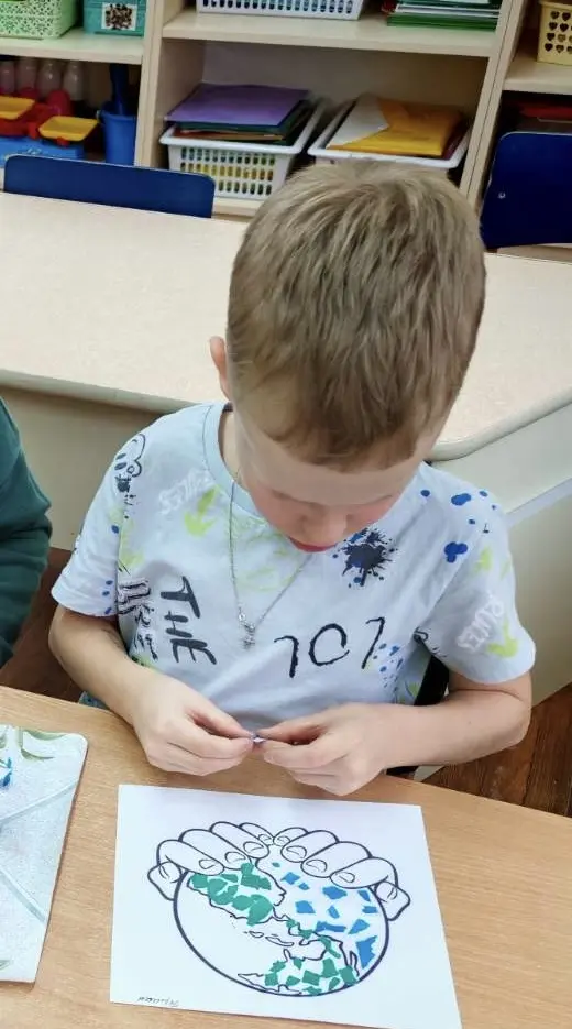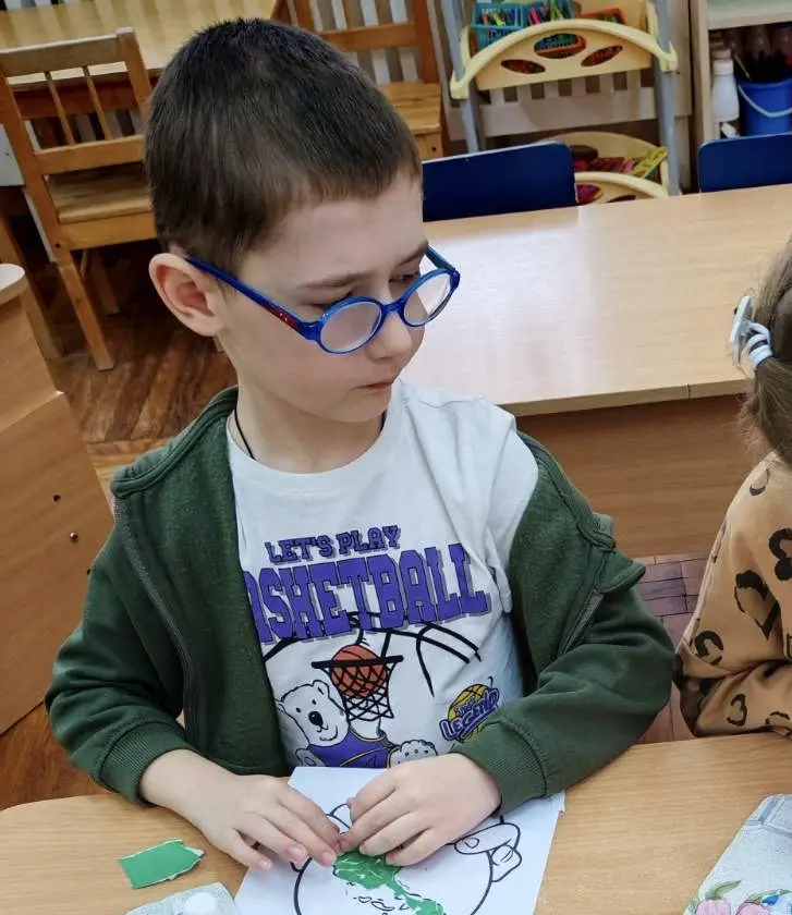 «Обрывная аппликация» - это отдельный вид аппликации. В обрывной аппликации все детали рисунка не вырезаются из цветной бумаги, а отрываются и приклеиваются в виде мозаики. Техника обрывной аппликации очень похожа на разукрашивание. Здесь тоже нужно заполнить определённым цветом каждую часть рисунка. Кусочки бумаги просто отрываются руками и приклеиваются к основе.